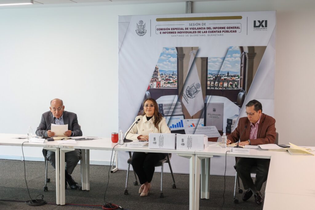 Santiago de Querétaro, Qro., 20 de abril de 2026. Al reanudarse la sesión de la Comisión Especial de Vigilancia del Informe General e Informes Individuales de las Cuentas Públicas, presidida por la diputada Claudia Díaz Gayou e integrada por los legisladores Ulises Gómez de la Rosa y Luis Antonio Zapata Guerrero, fue aprobado el Dictamen del Informe General del resultado de la fiscalización de Cuenta Pública del ejercicio fiscal 2024, con dos votos a favor de la diputada Claudia Díaz Gayou y del diputado Ulises Gómez de la Rosa, con el voto en contra del diputado Luis Antonio Zapata Guerrero.